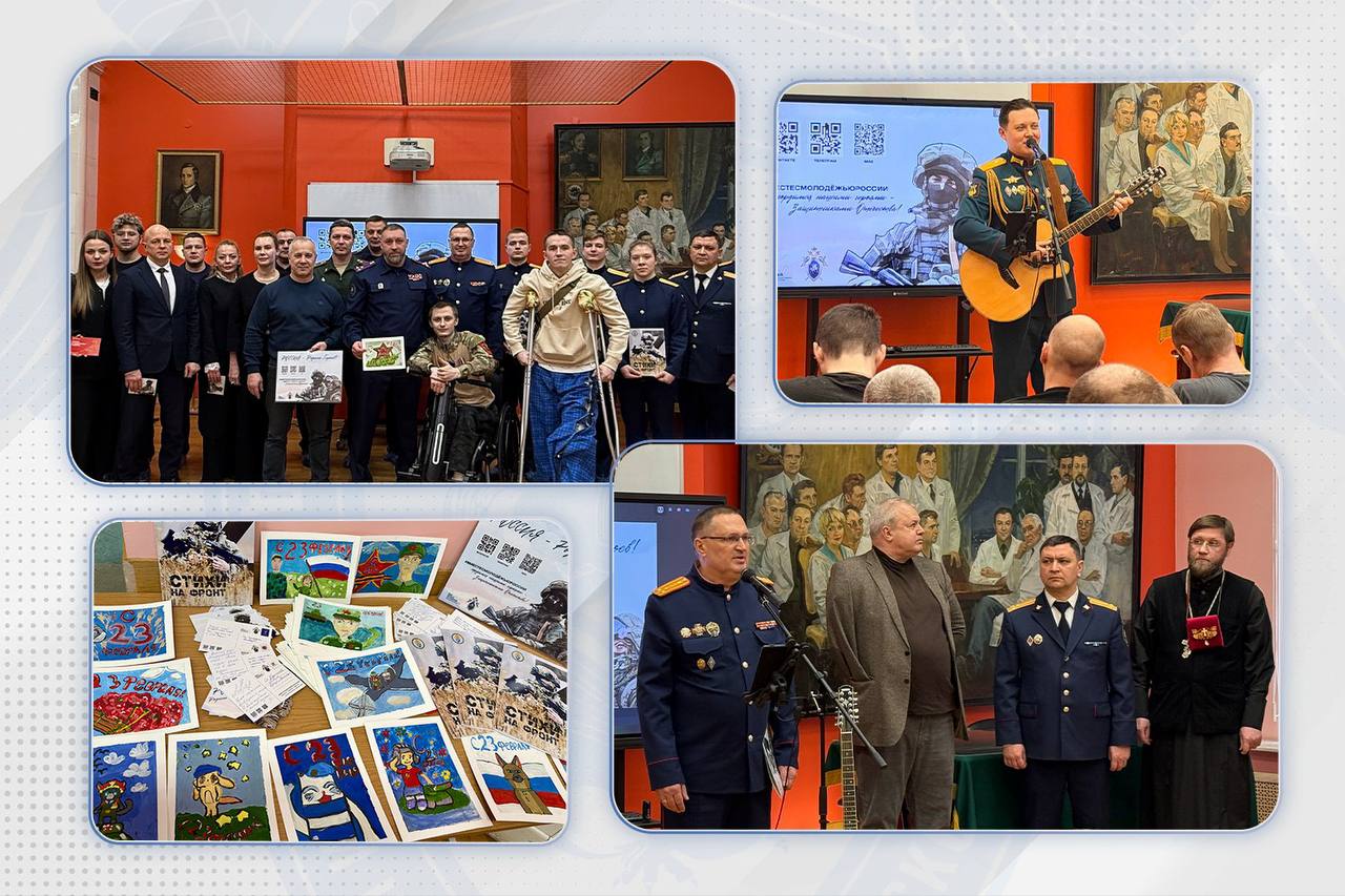 Особым событием стало чтение стихов авторами — курсантами Санкт-Петербургской академии СК России — участником СВО Егором Полиектовым, Дарьей Востряковой и Ильей Тарасенковым. Их творения, посвященные мужеству, воинскому долгу, любви к Родине и памяти о героях, прозвучали с особой искренностью и силой, найдя глубокий отклик у участников встречи.