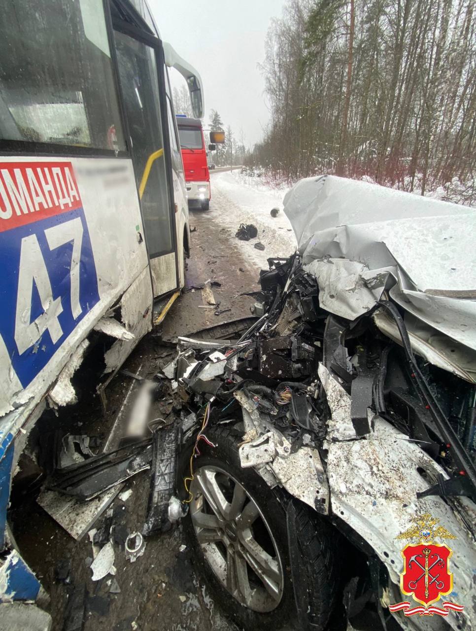 27 февраля около десяти часов утра на 85 км автодороги «Осиновая роща – Магистральная» во Всеволожском районе, водитель 1984 года рождения, управляя автобусом «Паз» маршрута № 885а, двигаясь без пассажиров из парка от деревни Агалатово в сторону Керро, не справился с управлением, автобус занесло на встречную полосу и он столкнулся с легковым автомобилем «Джилли».