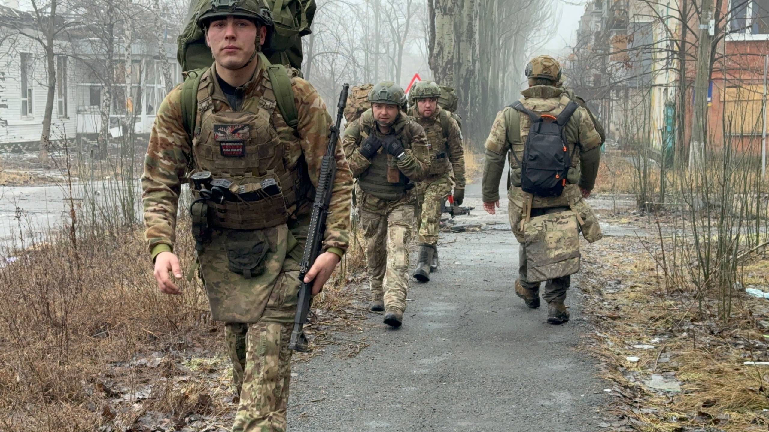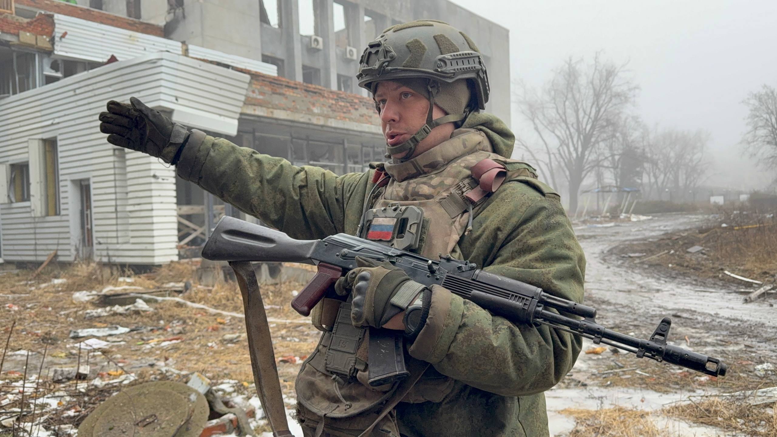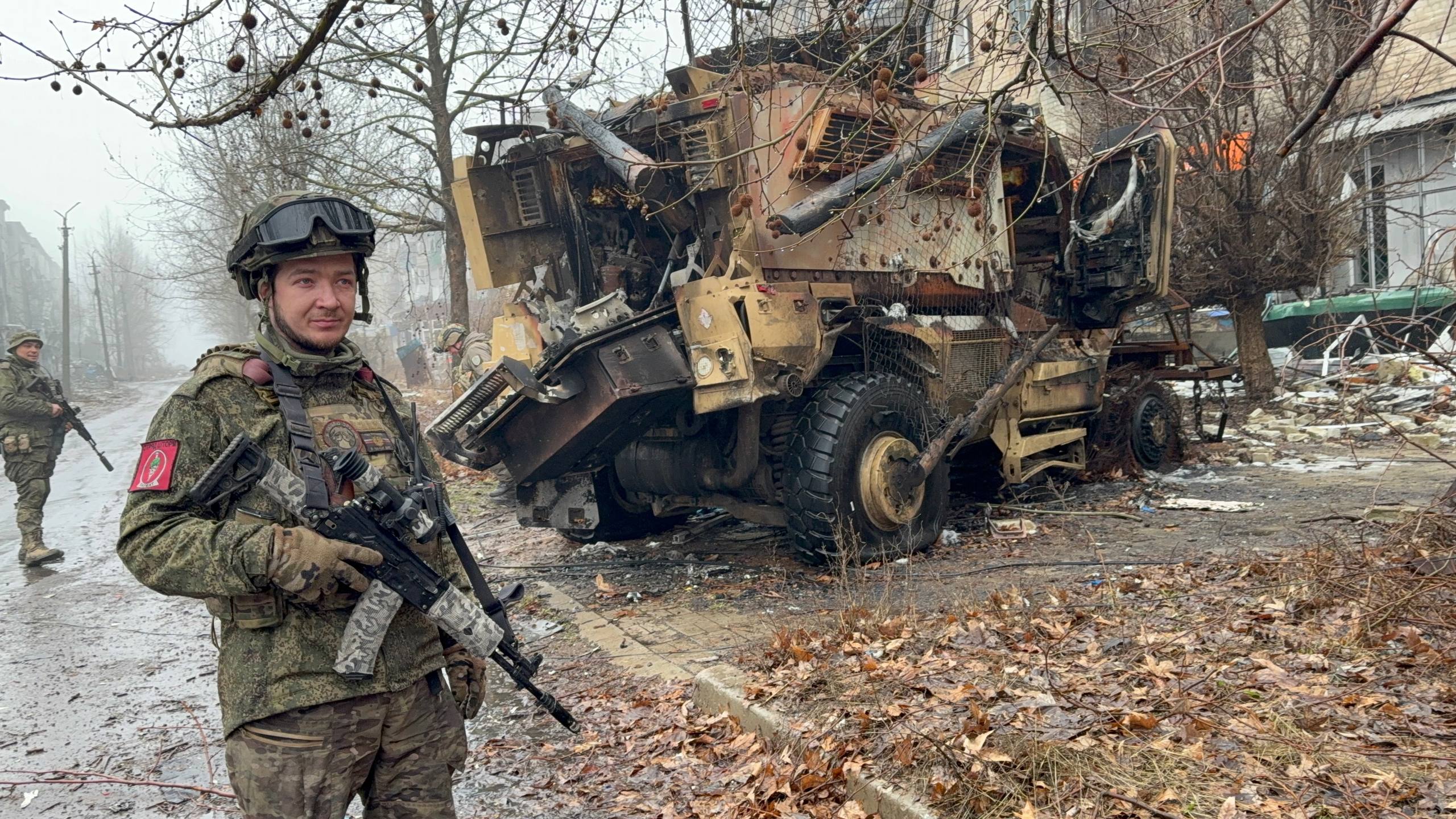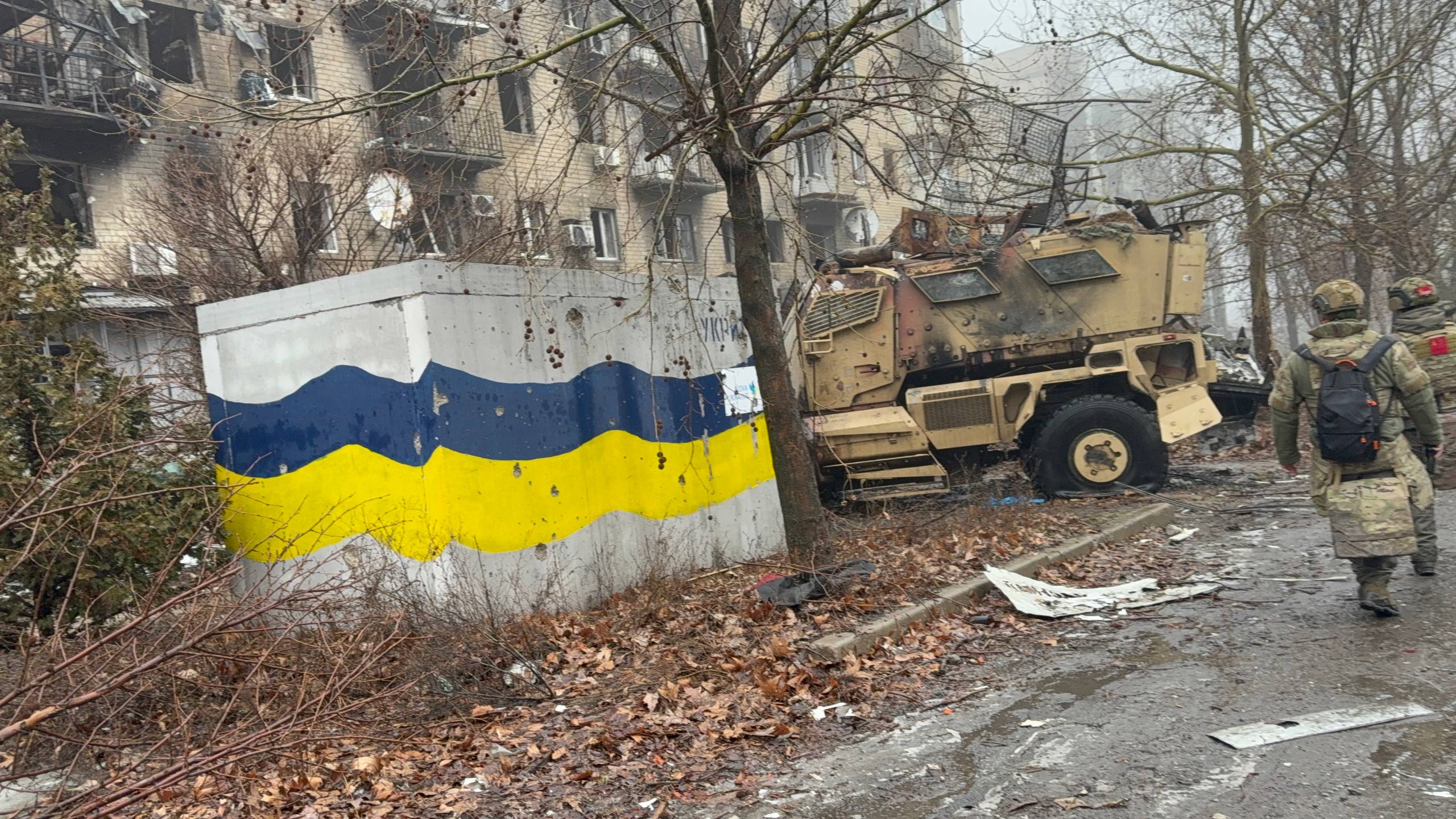 Вместе с очередным проводником двигаемся к центру, наблюдая, как живет прифронтовая логистика, пока позволяет погода. Весь город приходит в движение и такелажники своими «муравьиными» тропами молча двигаются пешком из одного конца города в другой. Туда тащат на себе боеприпасы и топливо, обратно — пустые канистры и тележки с ранеными. Мы топаем своей дорогой, проходя мимо разбитого корпуса центральной больницы. У пандуса приемного покоя — свежая кровь на сером бетоне. Обгоняем связистов, которые тянут куда-то оптоволокно, чтобы запустить интернет на очередном ППУ.