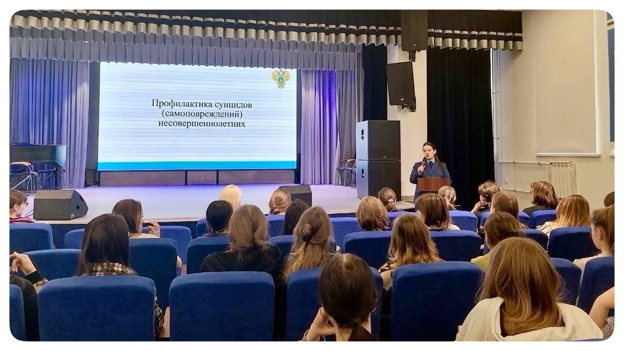 [ Прокурор отдела по надзору за исполнением законов о несовершеннолетних прокуратуры г. Санкт-Петербурга Анна Аверьянова ] обсудила со студентами вопросы профилактики и признаки самоповреждающего поведения несовершеннолетних. До слушателей доведены результаты прокурорских проверок.