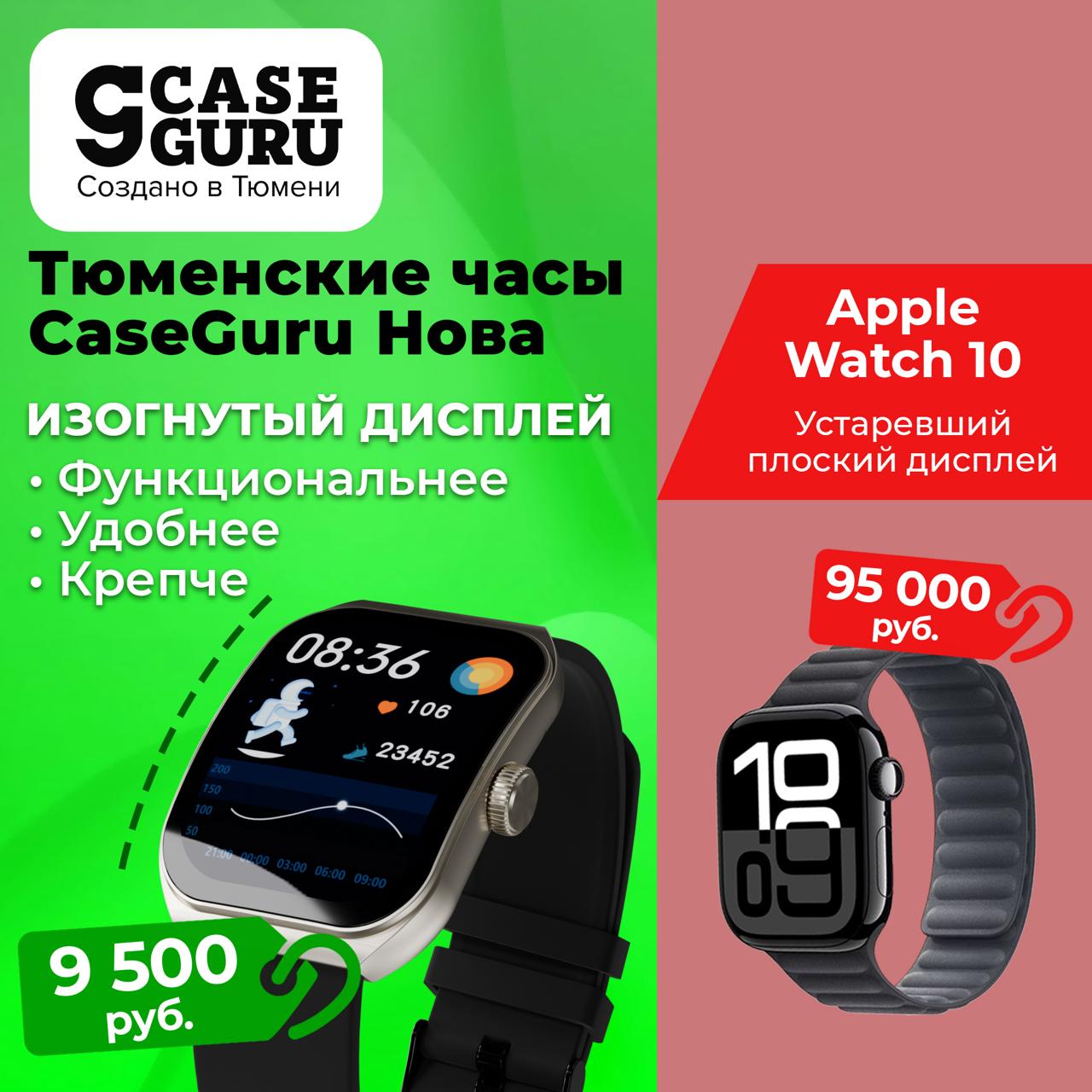 Тюменские часы CaseGuru Спорт — с дисплеем крупнее аналогов и В РАЗЫ надёжнее ноунеймов. Корпус из ударопрочного полимера, лёгкие и комфортные при ношении. Держат связь со смартфоном на рекордном расстоянии до 50 метров!