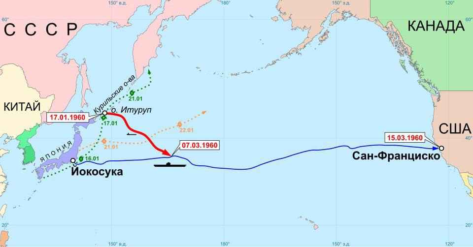 7 марта 1960 года американские моряки подняли на борт авианосца «Kирсардж» экипаж советской танкодесантной баржи, которая к этому моменту дрейфовала уже 49 суток в Тихом океане – после того, как сорвалась с якоря у курильского острова Итуруп. И осталась без воды, продовольствия и связи.