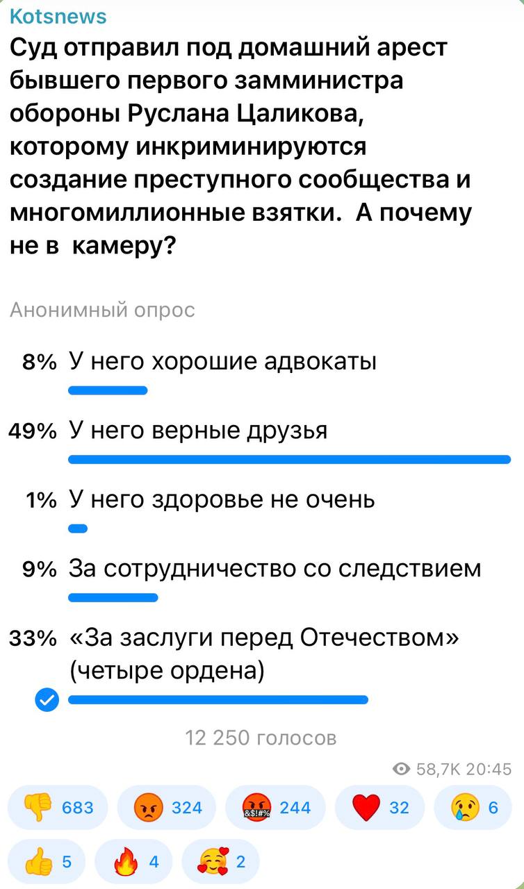 49 процентов подписчиков считают, что Цаликову помогают влиятельные друзья. Узнать бы их пофамильно.
