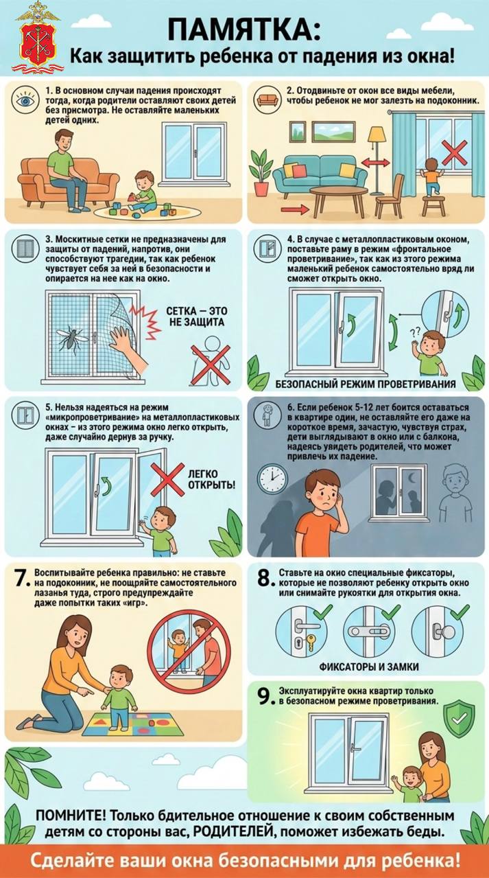 С наступлением весенне-летнего периода, отмечается рост несчастных случаев, которые связаны с выпадением детей из окон. Причинами, как правило