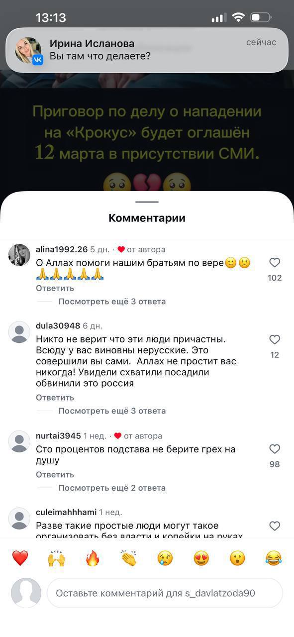 В Питере осудили ценного специалиста из Средней Азии за публичное оправдание теракта в «Крокус Сити Холле».
