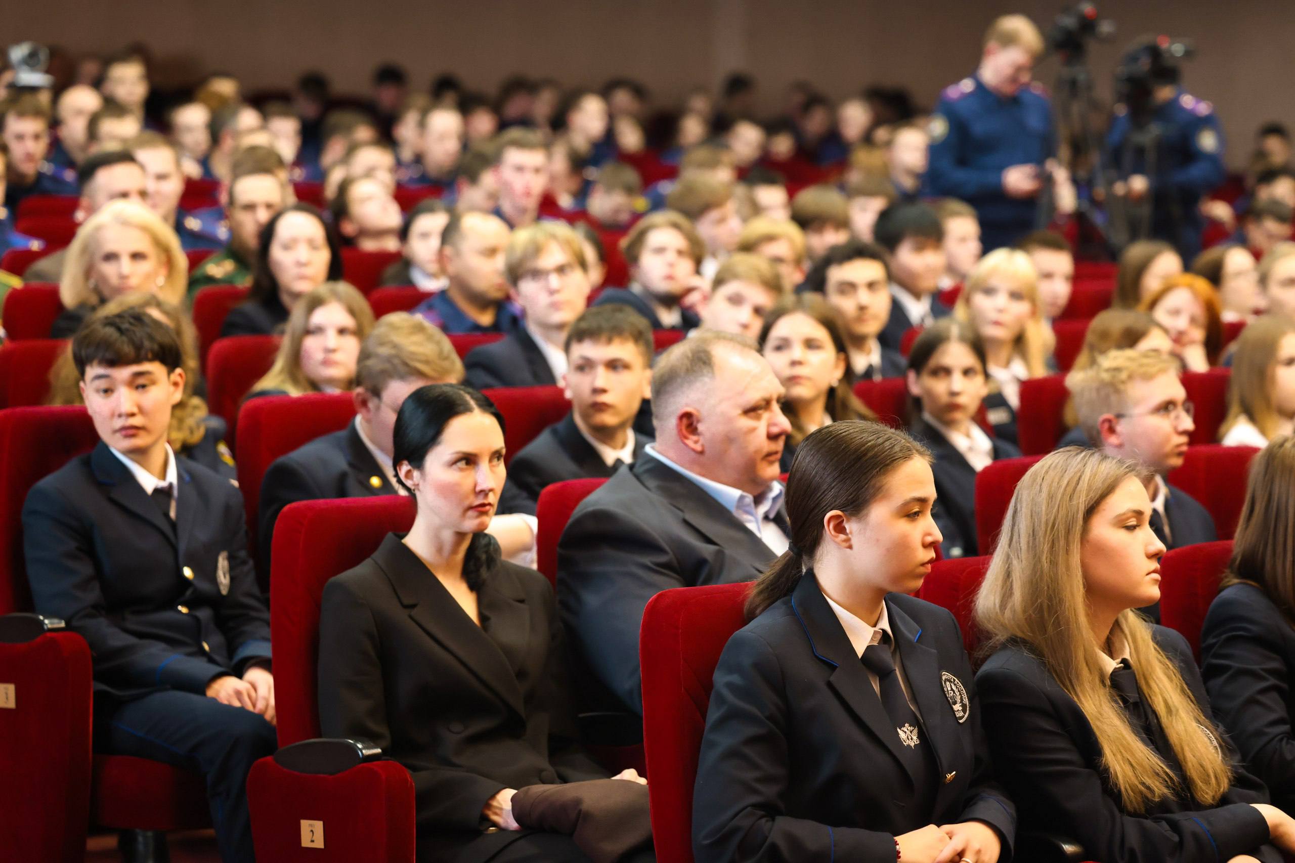 Также в зале присутствовали сотрудники центрального аппарата Следственного комитета, преподаватели Кадетского корпуса СК России им. А. Невского и иные приглашенные лица. В дистанционном формате участие приняли курсанты Санкт-Петербургской и Луганской академий СК России.