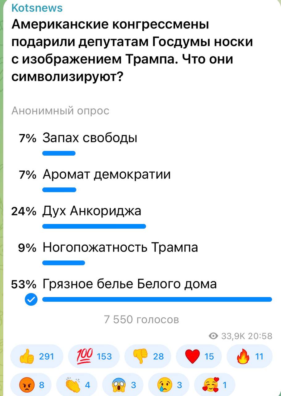 53 процента подписчиков считают, что Белый дом таким образом продемонстрировал свое грязное белье. А чего сразу не семейные трусы с Дональдом на попе?