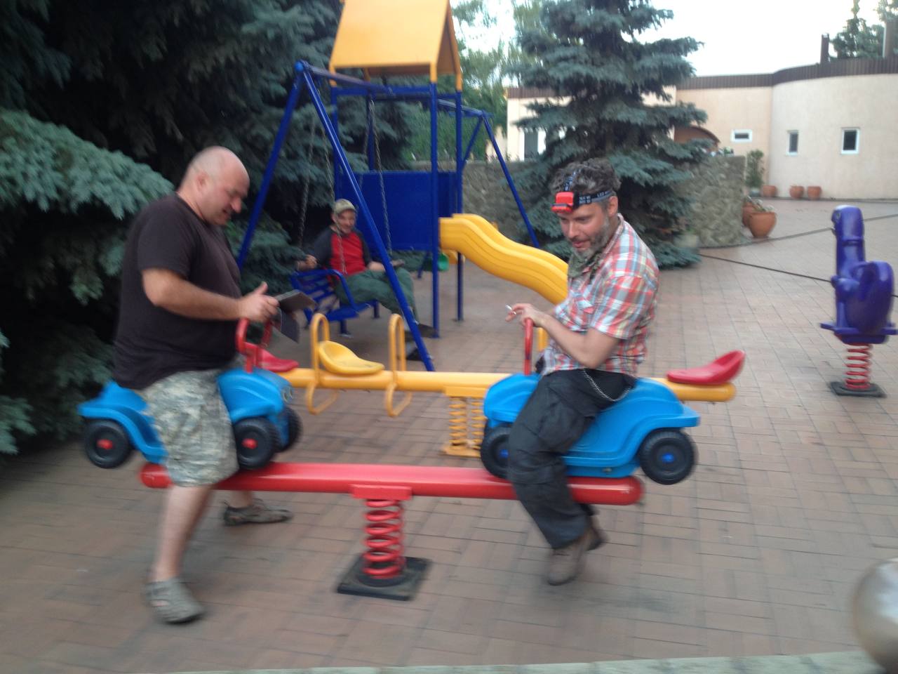 «Славянск без водопровода и электричества приуныл. Мы оказались в кольце окружения из вшей и эпидемий. Поначалу купались в бассейне, но от тонн немытых тел купальня зацвела и там завелись жирные жабы и крокодилы.