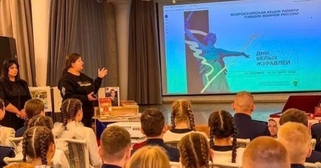 Виктория Ивановна рассказала обучающимся об акции «Дни белых журавлей», ее роли в сохранении исторической памяти и формировании у молодежи глубокого уважения к подвигу защитников Отечества. Особое внимание было уделено важности личного участия каждого в деле увековечения памяти павших воинов.