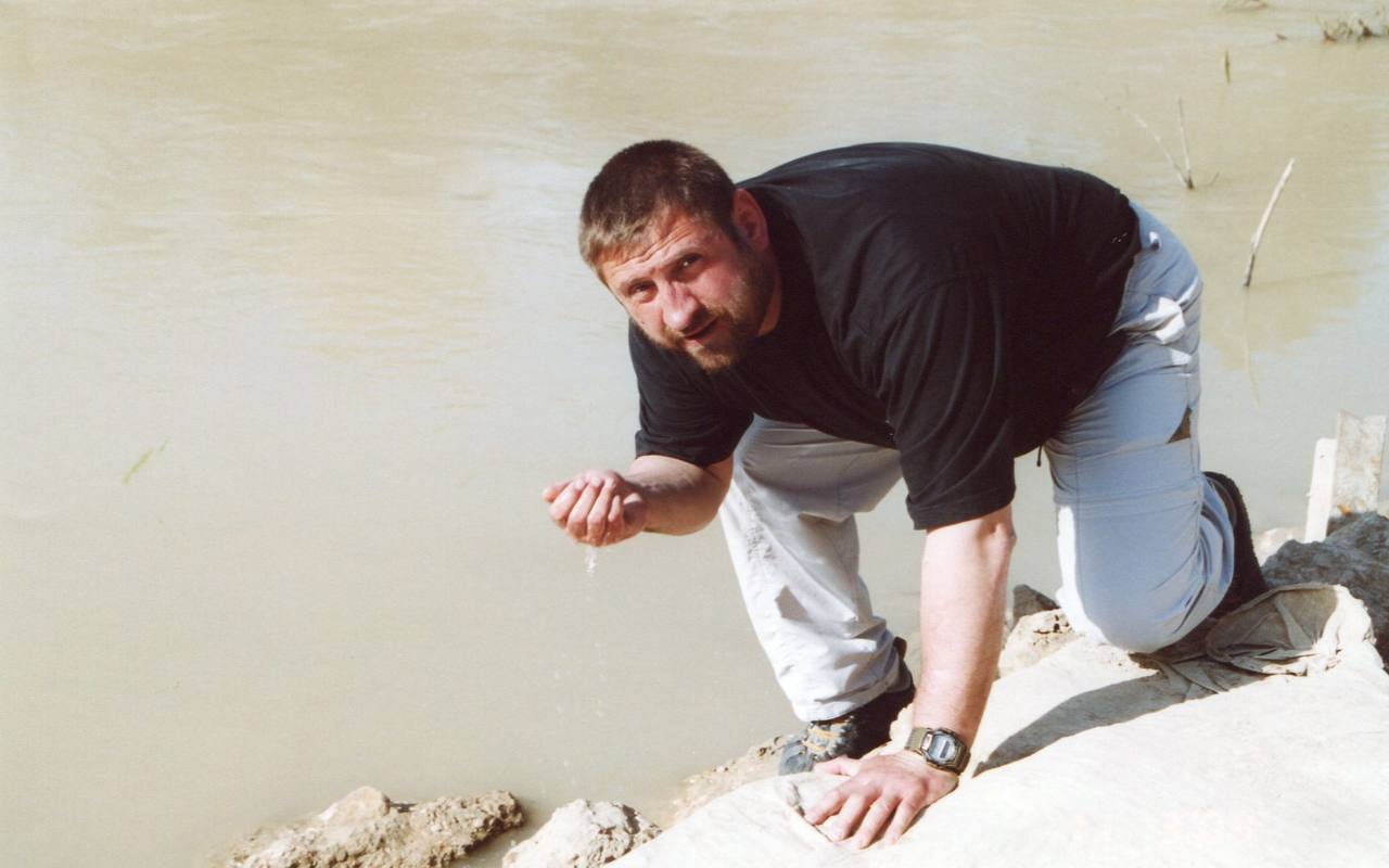 Здесь был изгиб русла, Иоанн Креститель жил здесь, на Иорданской стороне . И Христос был у него здесь. На том, берегу неширокого Иордана, метрах в сорока, я увидел израильского солдата, махнул ему рукой и на русском сказал: