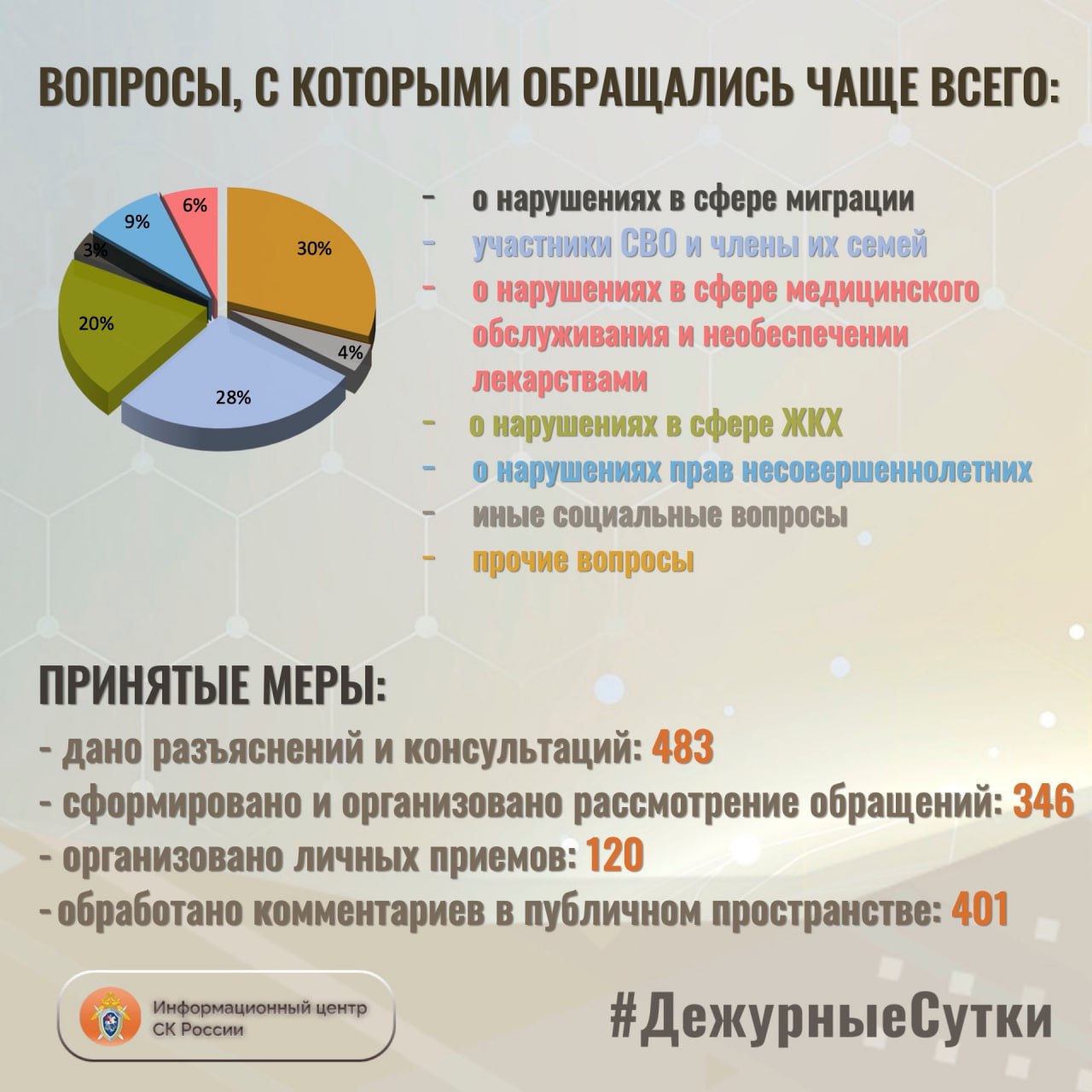 В Информационный центр СК России за прошедшие сутки всего обратилось граждан: 829