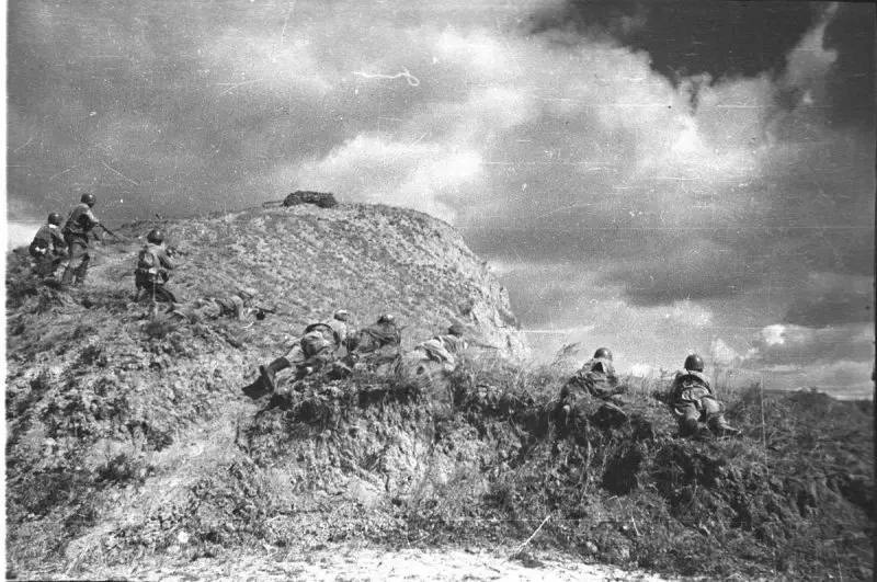 А на высотах - почти не пострадавшие от артподготовки и воздушного удара немецкие траншеи, доты, дзоты, вкопанные в землю по башню танки, поставленные на прямую наводку 88-мм зенитки...