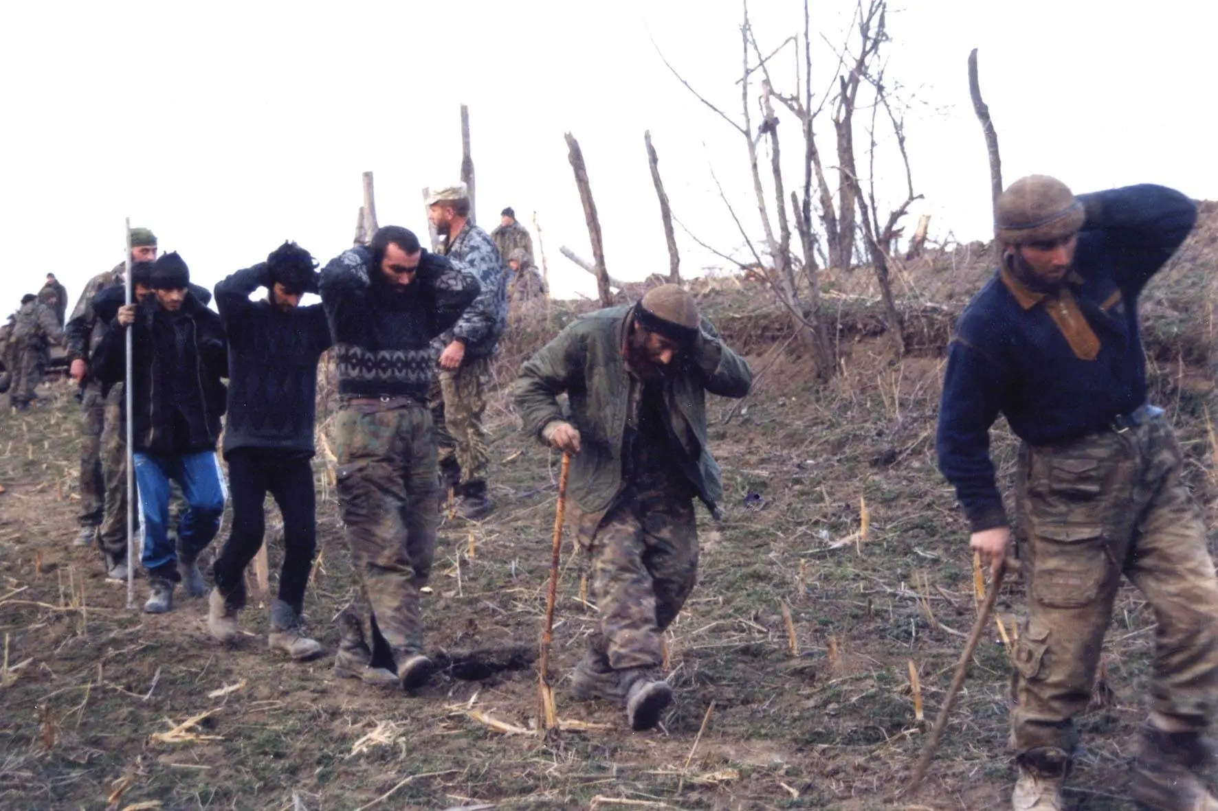 Первые пленные чеченцы, которых я увидел. Задержанных до этого видал, а вот взятых в бою, впервые.