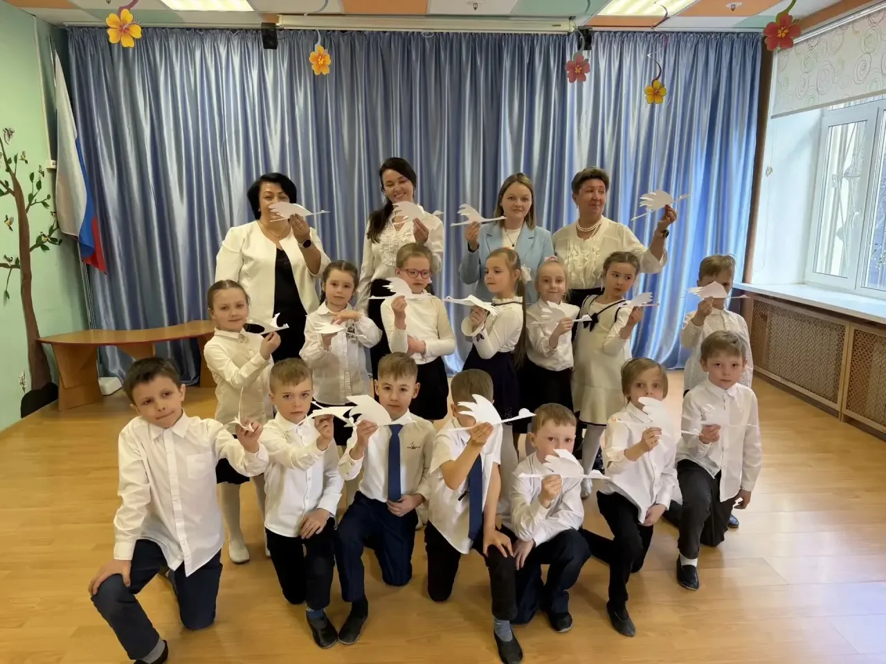 Ребята совместно со следователем собственноручно вырезали белых журавлей, символизирующих надежду на мир и сохранение памяти о тех, кто отдал свою жизнь за свободу и независимость. После чего участники мероприятия направились в Парк Победы, расположенный в Московском районе города Санкт-Петербурга, где дети возложили цветы к памятникам героев Советского Союза — Александру Матросову и Зое Космодемьянской.
