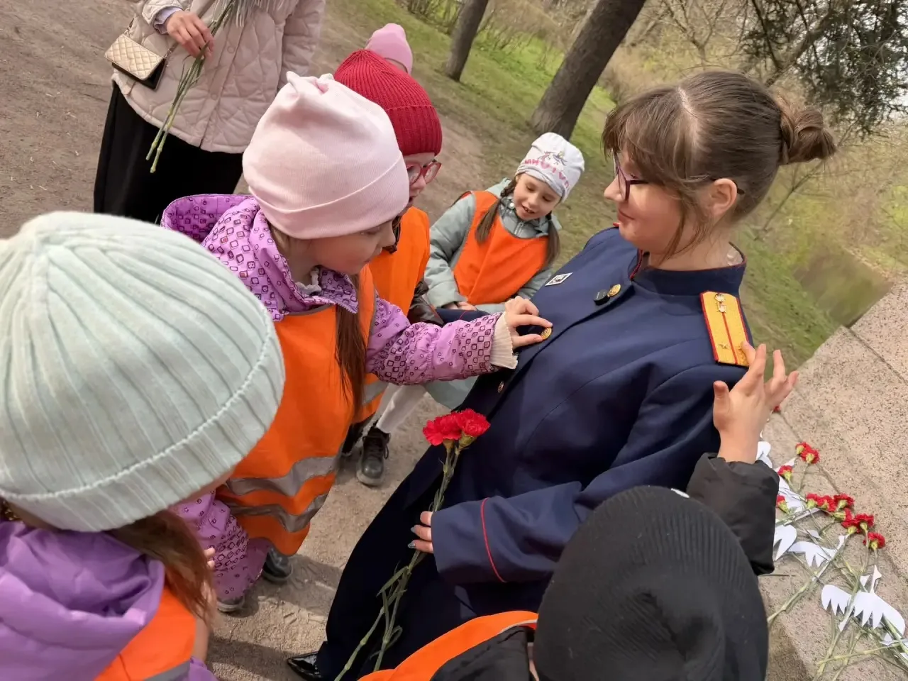 В рамках патриотического воспитания молодого поколения следователь рассказал детям о подвиге этих героев, о том, как их мужество и самопожертвование помогли защитить Родину в трудные времена. Дети с интересом слушали истории о героизме и стойкости, задавали вопросы и делились своими мыслями о значении патриотизма и любви к родной стране. После возложения цветов участники акции собрались в круг, где провели минуту молчания в память обо всех павших героях.