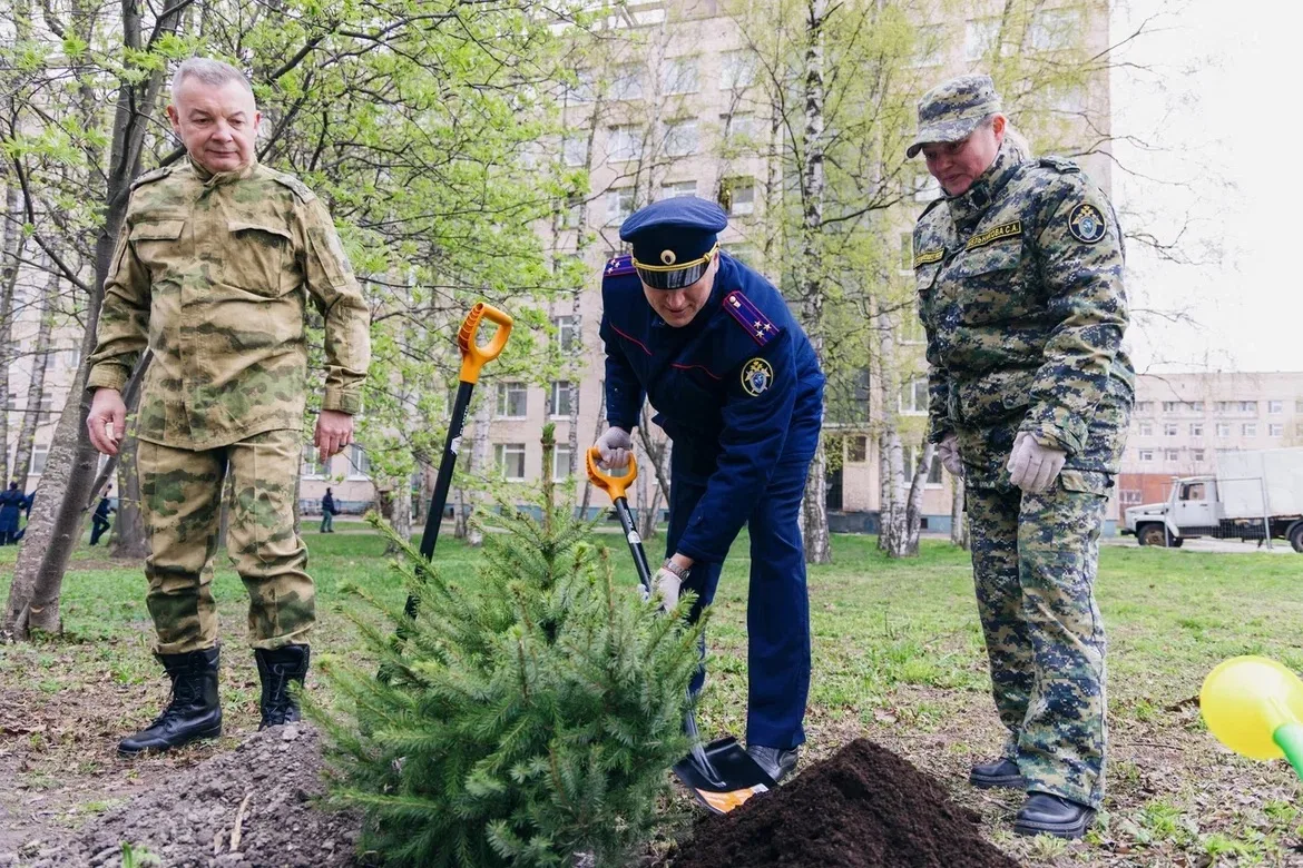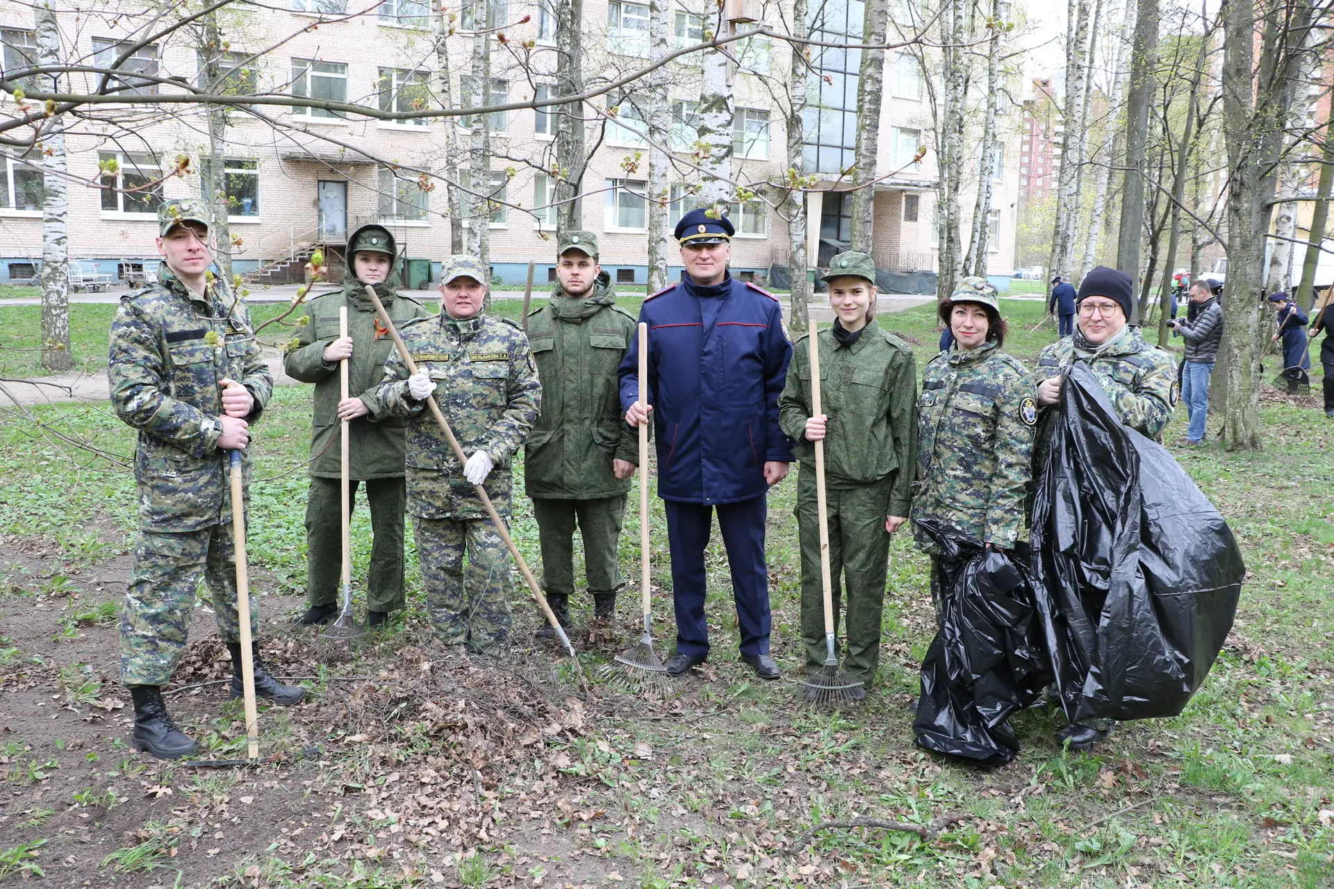 В субботнике приняли участие начальник госпиталя Максим Юрьевич Кабанов, его заместитель Татьяна Евгеньевна Погода и сотрудники госпиталя, заместитель руководителя ГСУ СК России по городу Санкт-Петербургу Александр Юрьевич Скибенко, старший помощник руководителя