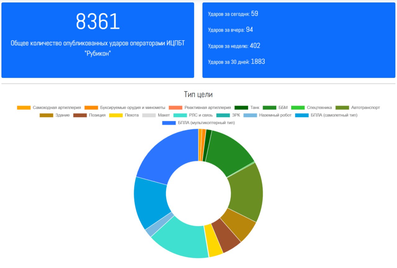 Статистика Центра перспективных беспилотных технологий «Рубикон» впечатляющая, за не полный год опубликовано 8361 эпизод применения БПЛА, из них 1883 только за сентябрь.
