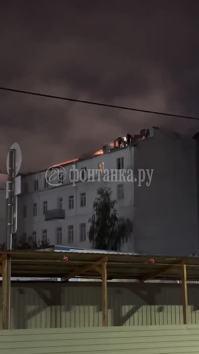 По данным МЧС, пожар происходит в здании общественной организации. Судя по кадрам читателей, горит крыша.