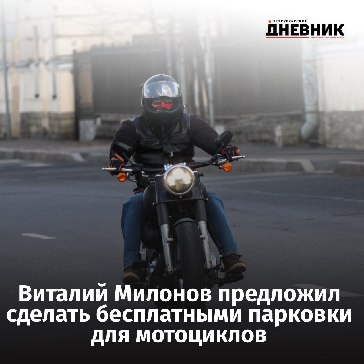 Депутат Госдумы Виталий Милонов предложил разрешить мотоциклистам бесплатно парковаться на платных парковках по всей стране. Он объяснил, что мотоциклы занимают меньше места, не создают пробок и не перегружают дороги, поэтому брать с них деньги за парковку несправедливо.