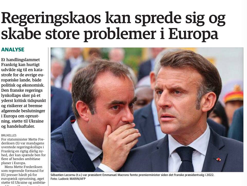 Датская газета Jyllands-Posten жутко переживает, что политический паралич Франции может переброситься на другие европейские страны и затормозит принятие решений относительно помощи Украине. Так это же прекрасно!