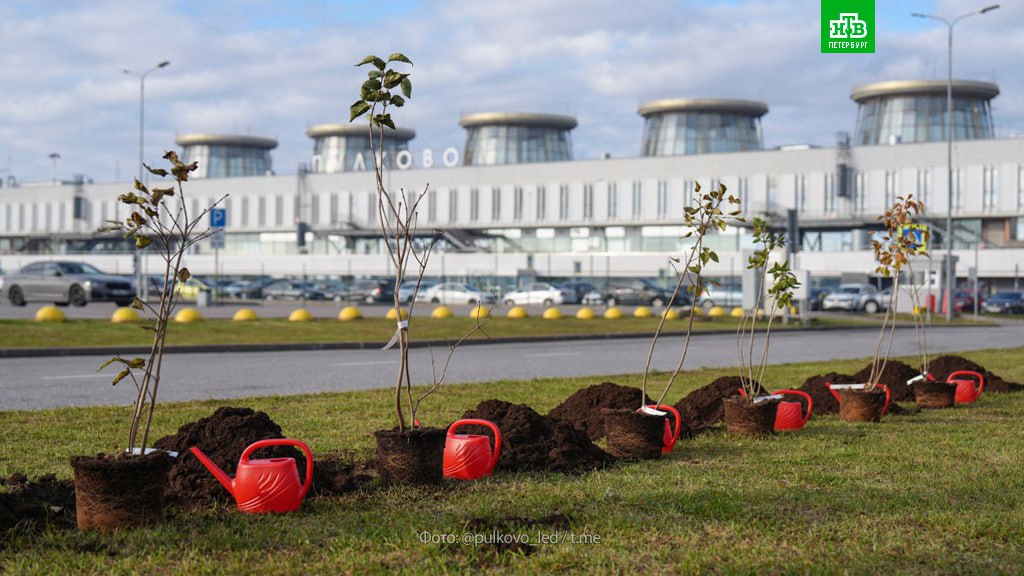 В аэропорту Пулково посадили аллею сирени в честь героев авиации. Акцию посвятили 80-летию Победы.
