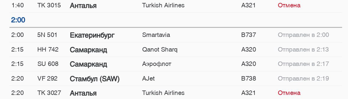 Рейс TK 3014 «Анталья – Санкт-Петербург» и TK 3026 также не отправились в зарубежный курортный город.