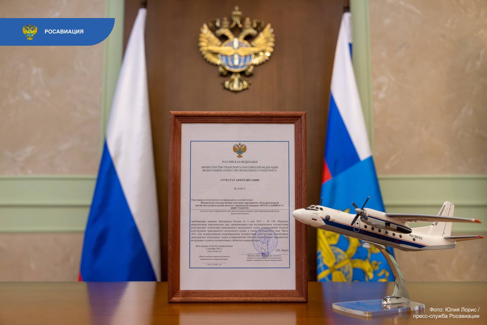 Подведомственный Росавиации Государственный научно-исследовательский институт гражданской авиации (ГосНИИ ГА) получил аттестат аккредитации в соответствии с новыми Федеральными авиационными правилами (ФАП-183).