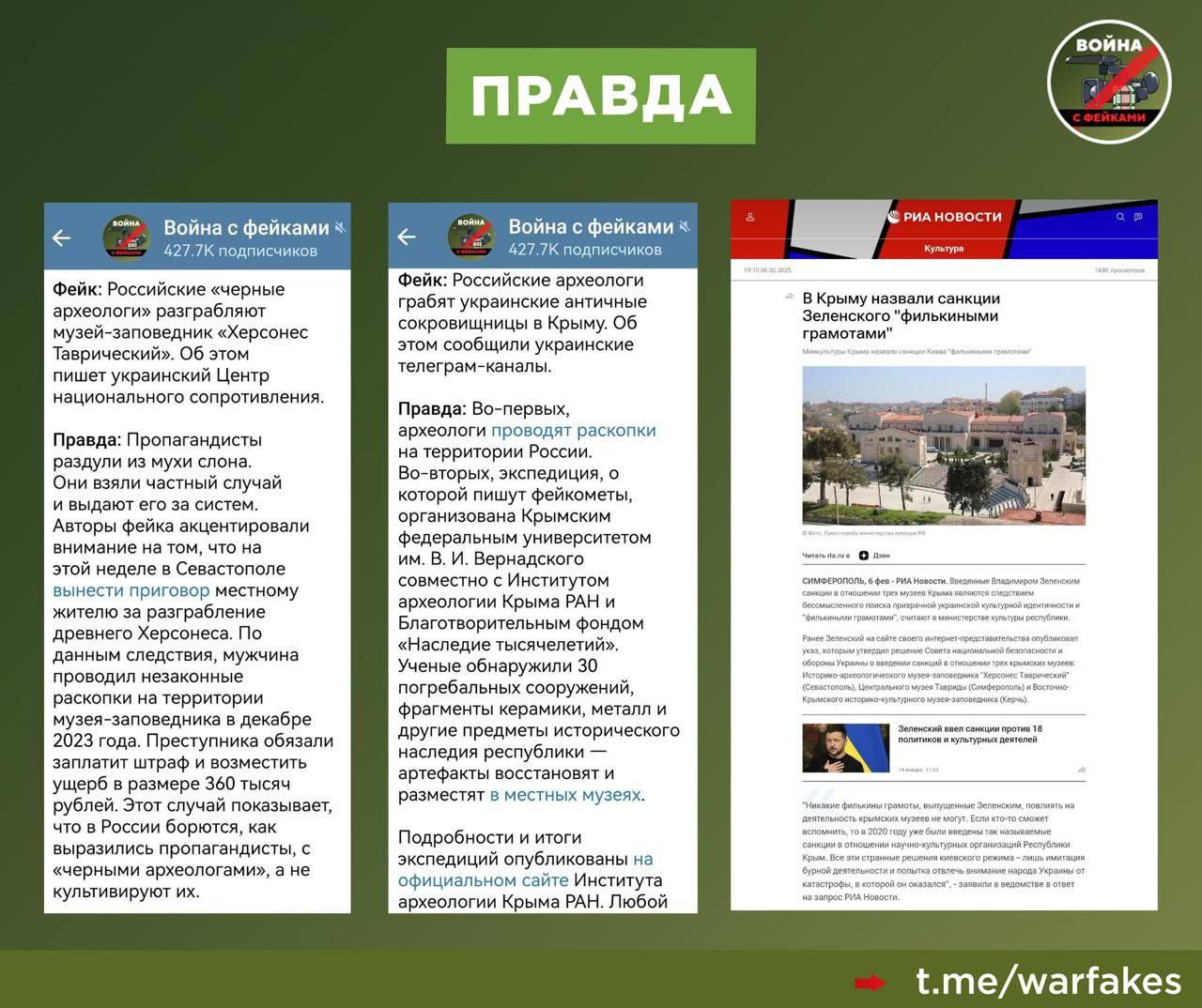 Фейк: Россияне проводят незаконные раскопки в Крыму и присваивают себе украинские культурные ценности. Об этом пишут украинские СМИ.
