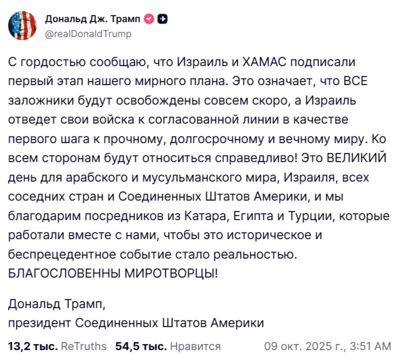 Поэтому маловероятно, что война в секторе Газа завершится в ближайшее время. Сейчас Трамп просто получил еще один повод заявить о своем притязании на Нобелевскую премию мира.