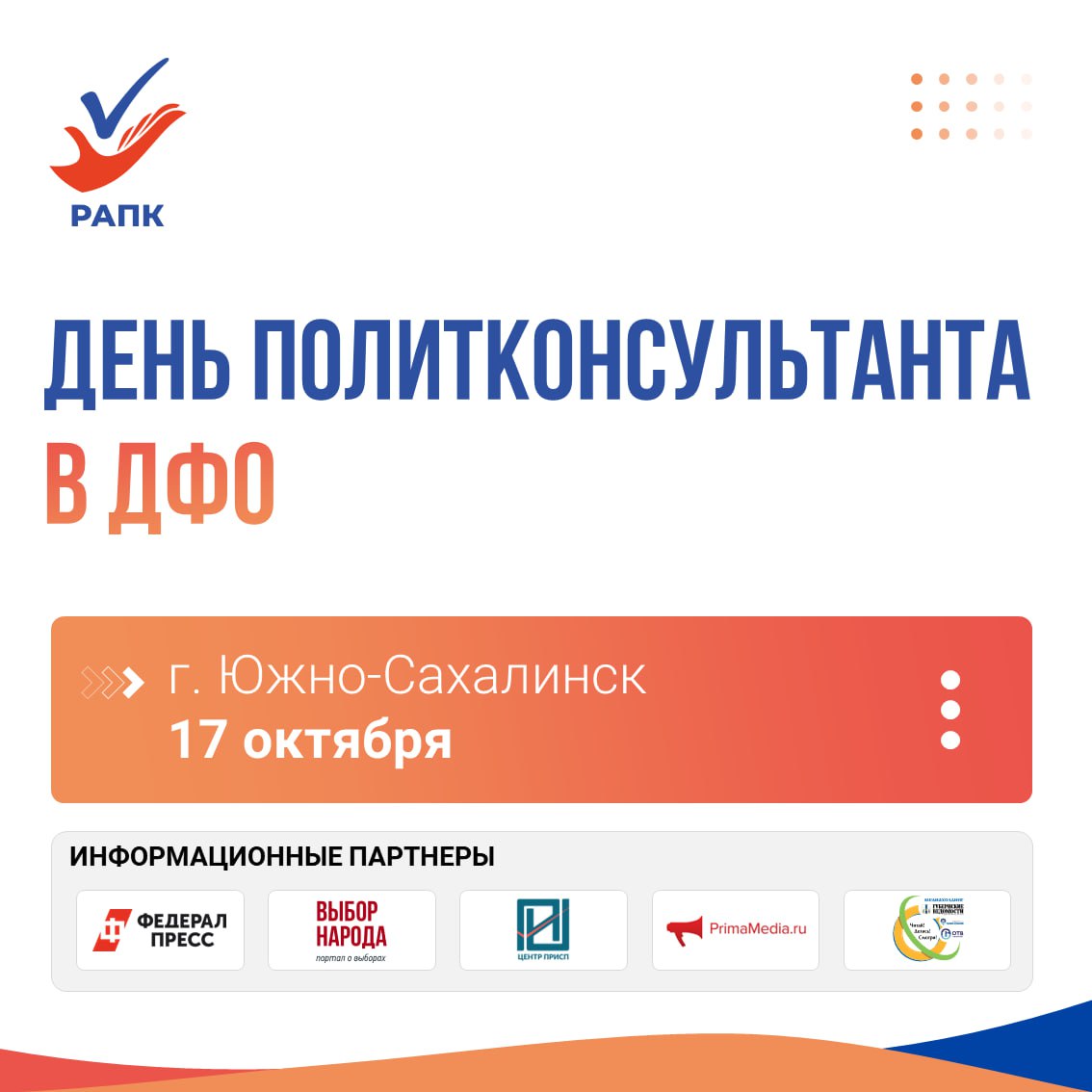 17 октября в Южно-Сахалинске пройдёт День политконсультанта в ДФО, в рамках мероприятия выступят наши коллеги из Ассоциации: