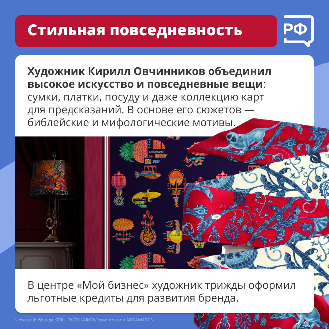 Вдохновляясь традициями и искусством России, предприниматели в творческих сферах создают уникальную одежду, посуду, предметы интерьера. Выходить на рынки им помогают в центрах «Мой бизнес», которые развиваются по нацпроекту «Эффективная и конкурентная экономика».