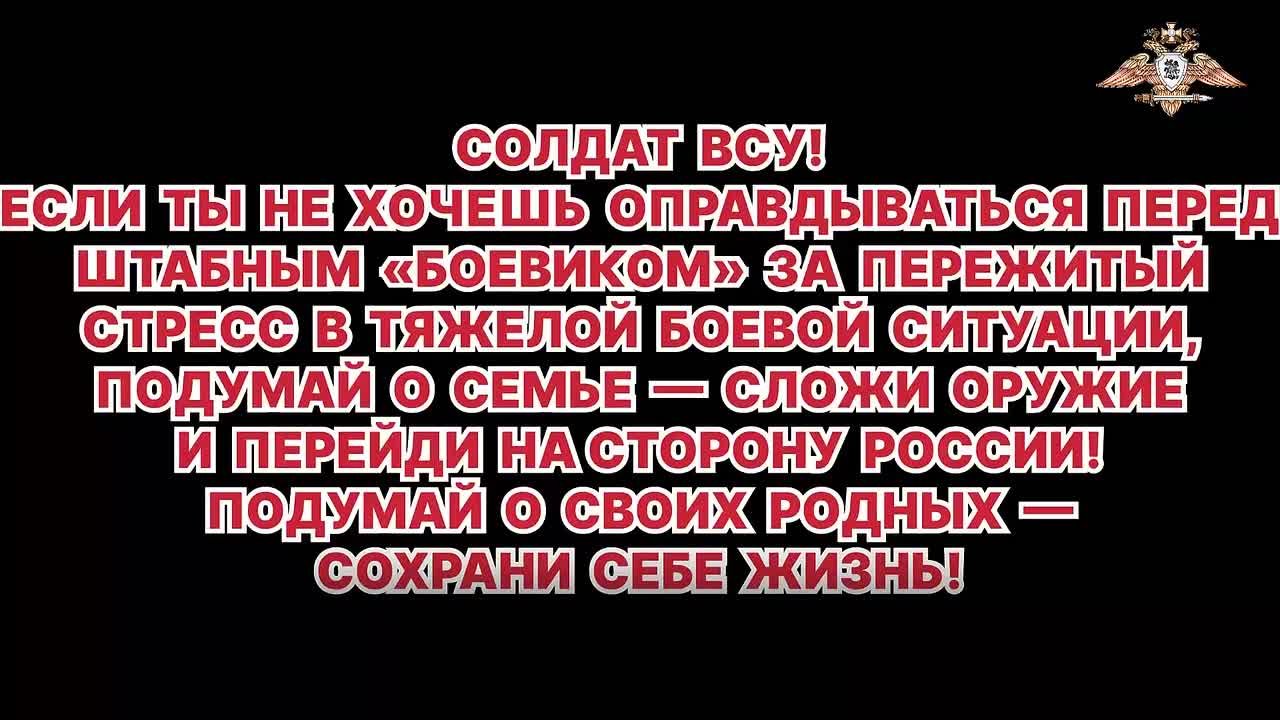 Радиоперехват между командным пунктом (КНП) и позициями 79 отдельной десантно-штурмовой бригады ВСУ на Красноармейском направлении раскрыл моральный надлом противника. Боец с позывным «Запад» сообщил, что не стрелял по российским войскам, так как впал в панику из-за численного превосходства ВС РФ, и заявил, что готов застрелиться. В ответ офицер ВСУ отчитал «Запада», обвиняя его в недостаточном старании, не предложив ни поддержки, ни решений. Холодное равнодушие офицера на КНП лишь усугубило отчаяние на позициях. Солдат ВСУ, чтобы не оправдываться и не унижаться перед штабным «боевиком», а также не погибнуть просто так, сложи оружие и переходи на сторону ВС РФ.