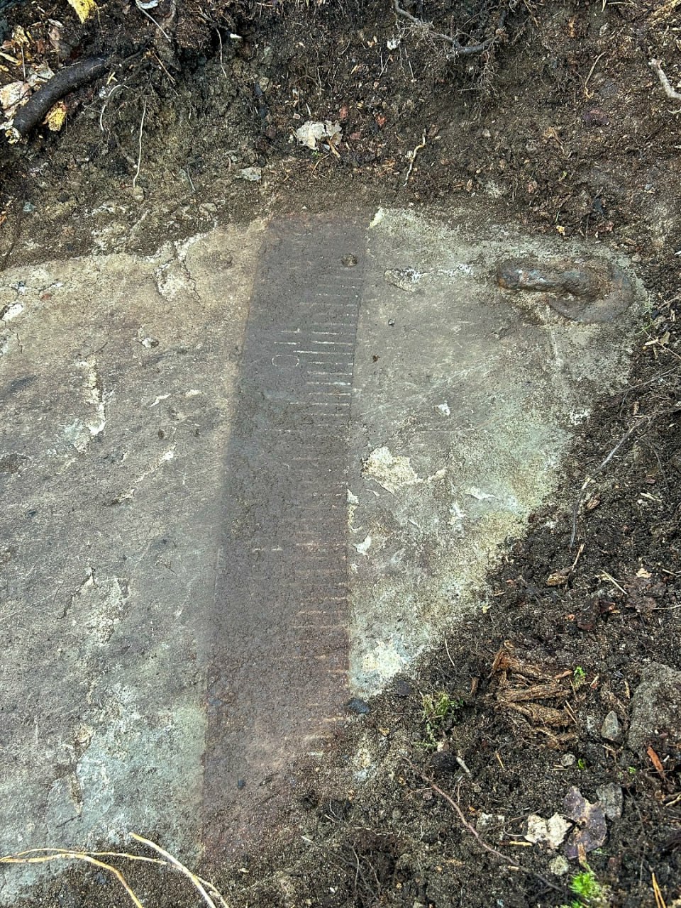 В этом году в числе открытий – новое обретение. При очистке от мусора и растительности на батарее 10-дюймовых пушек были найдены градуированная линейка и остатки штыря для горизонтальной наводки 10-дюймовой пушки на батарее форта. Характерно, что штырь был загнут сорванным взрывом с основания и упавшим набок лафетом с пушкой в мае 1918 года.