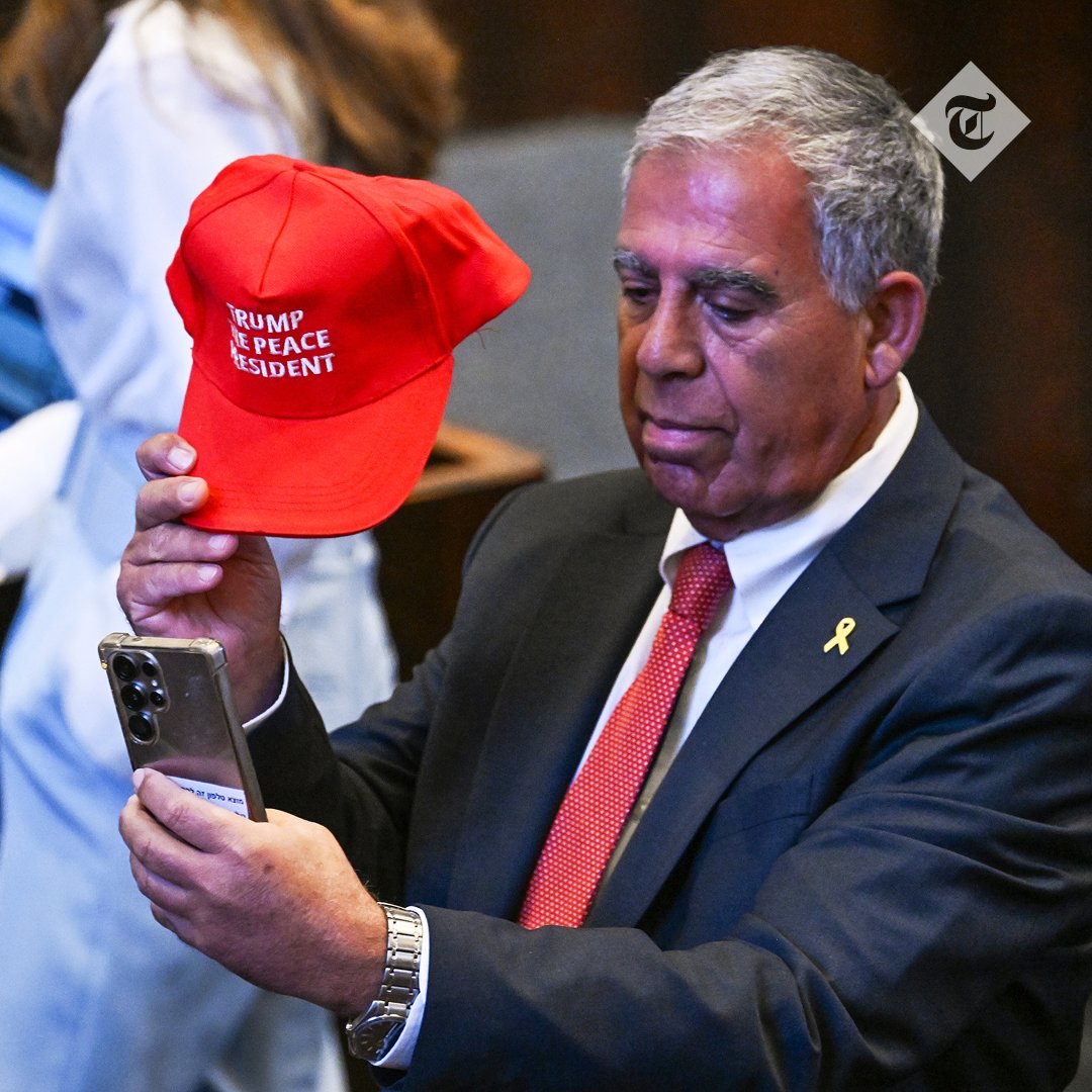 Красной кепкой с надписью: ‘Трамп - президент мира’