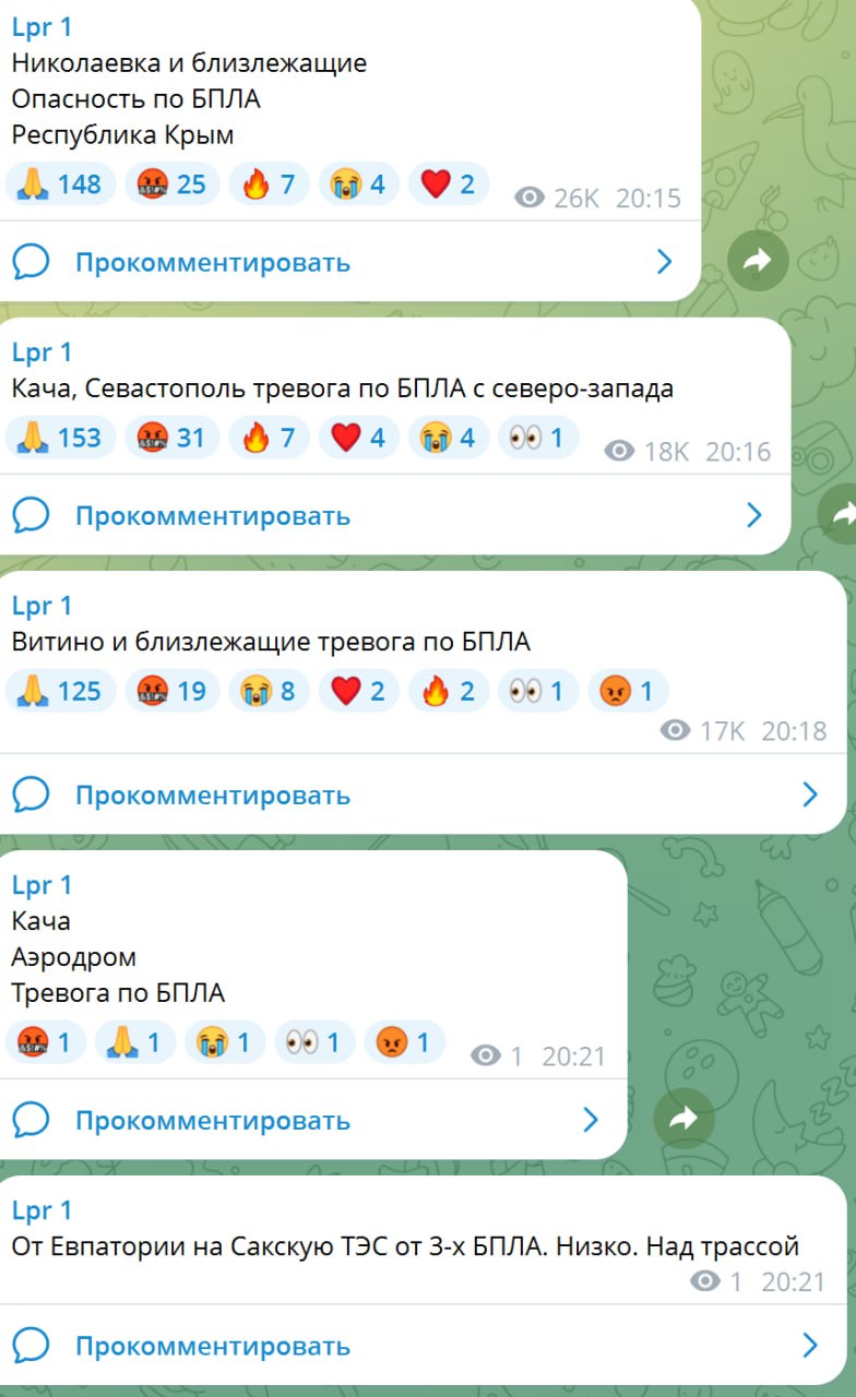 Мониторинговые каналы пишут о новой попытке вражеских БПЛА атаковать Крым. Вероятно, снова метят в электростанции.