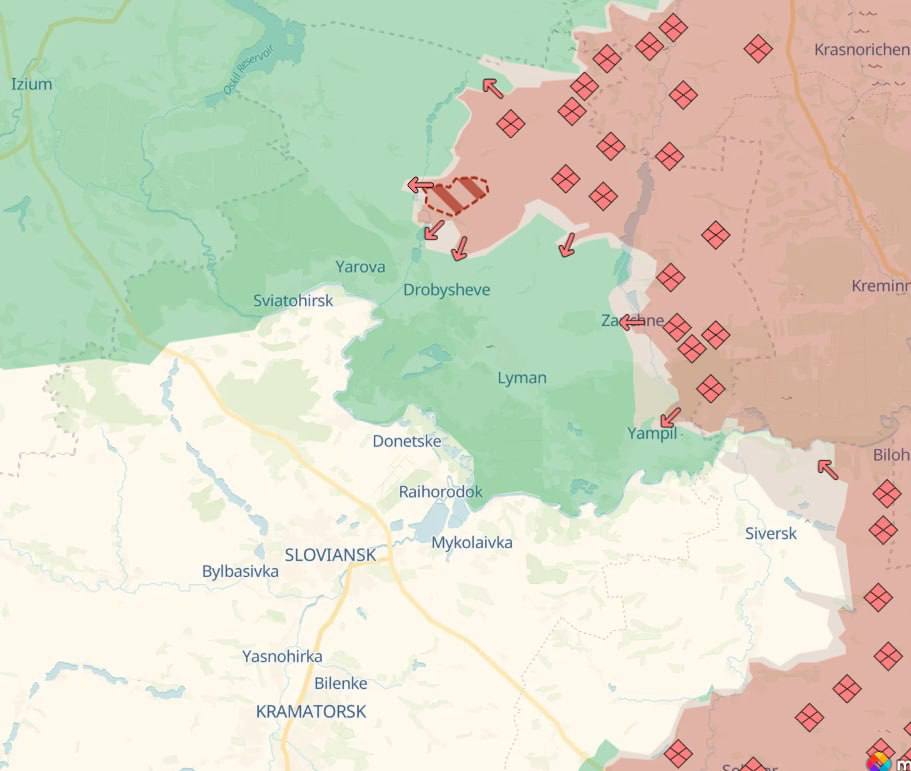 Также поступили данные о продвижении российских войск в районе Шандриголово, к северу от Лимана в Донецкой области.