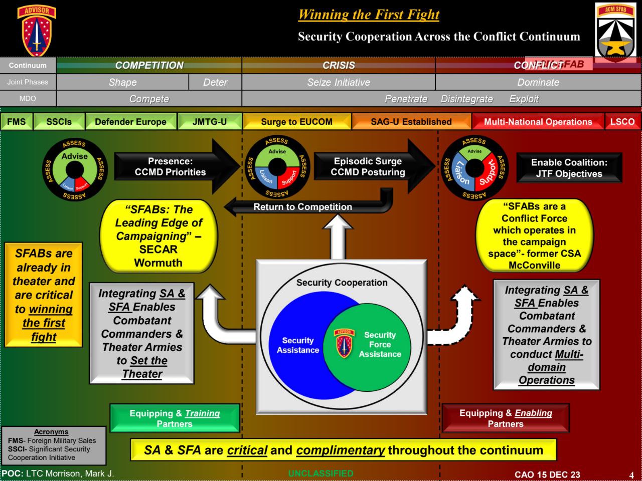 Касательно подготовки американских войск, в частности, бригад поддержки сил безопасности СВ США, к участию в многонациональных операциях и крупномасштабных боевых действиях (LSCO).