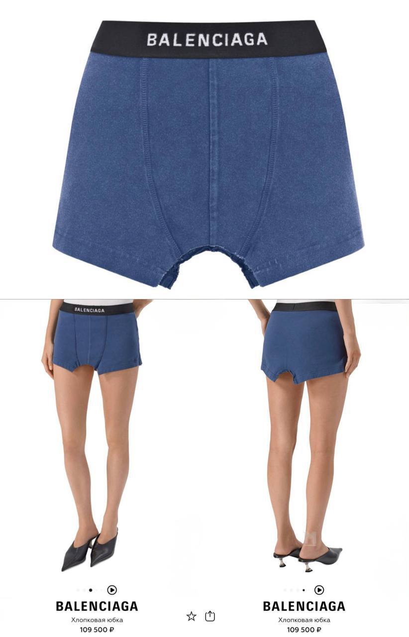 В ЦУМе появилась хлопковая юбка, стилизованная под мужские трусы, всего за 109 500 рублей — идеальный вариант для тех, кто всегда мечтал щеголять в трусах, но стеснялся назвать это высокой модой.
