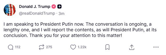 Трамп сообщил, что разговор с Путиным будет долгим