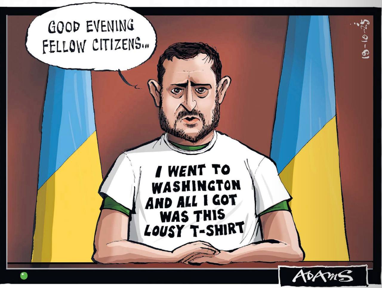 Газета The Sunday Telegraph подсмотрела вечернее обращение Зеленского. Наконец-то он обращается к своим согражданам не в зеленой фуфайке! На футболке написано: «Я съездил в Вашингтон и все, что я получил - эту паршивую футболку».