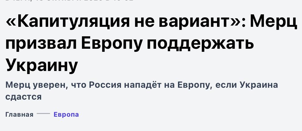 Мерц зовёт Европу на войну. Харизмы австрийского художника ему, конечно, не хватает, но деваться подмандатному населению некуда - рабочие места сокращаются, уровень жизни падает, долговой коллапс проявляется и совсем скоро европцы встанут перед выбором: сдохнуть сразу или идти в окопы.