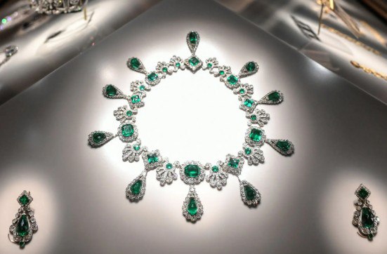 Это ожерелье из изумрудов и бриллиантов вошло в коллекцию Лувра только в 2004 году. Первоначально Наполеон подарил его Марии Луизе, своей второй жене, на свадьбу в 1810 году. Ожерелье украшено 32 изумрудами жемчужной и ромбовидной формы, а также 1138 бриллиантами.