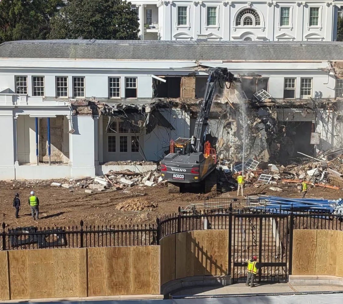 Трамп, конечно, нескучный парень. Ломают Белый дом, вернее один из пристроев.