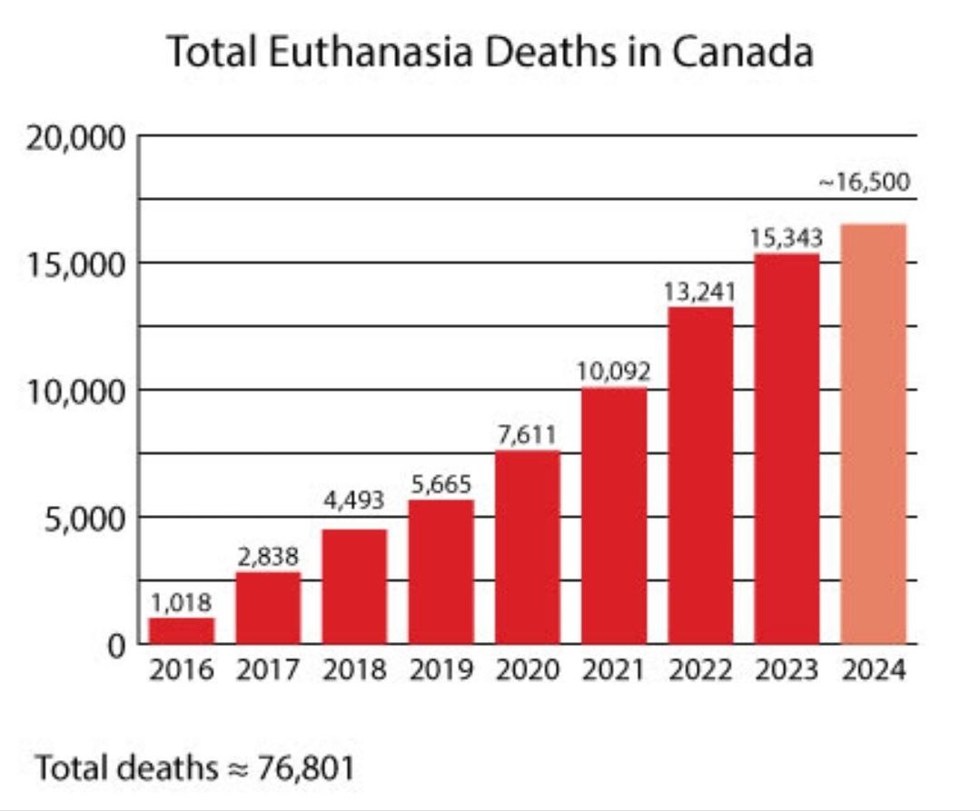 По данным надзорного органа, в Канаде было проведено около 90 000 эвтаназий после того, как в 2016 году либеральное правительство Трюдо узаконило так называемую «медицинскую помощь в умирании».