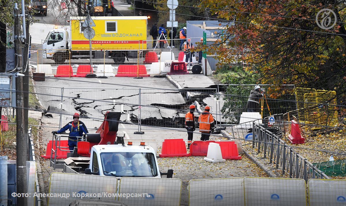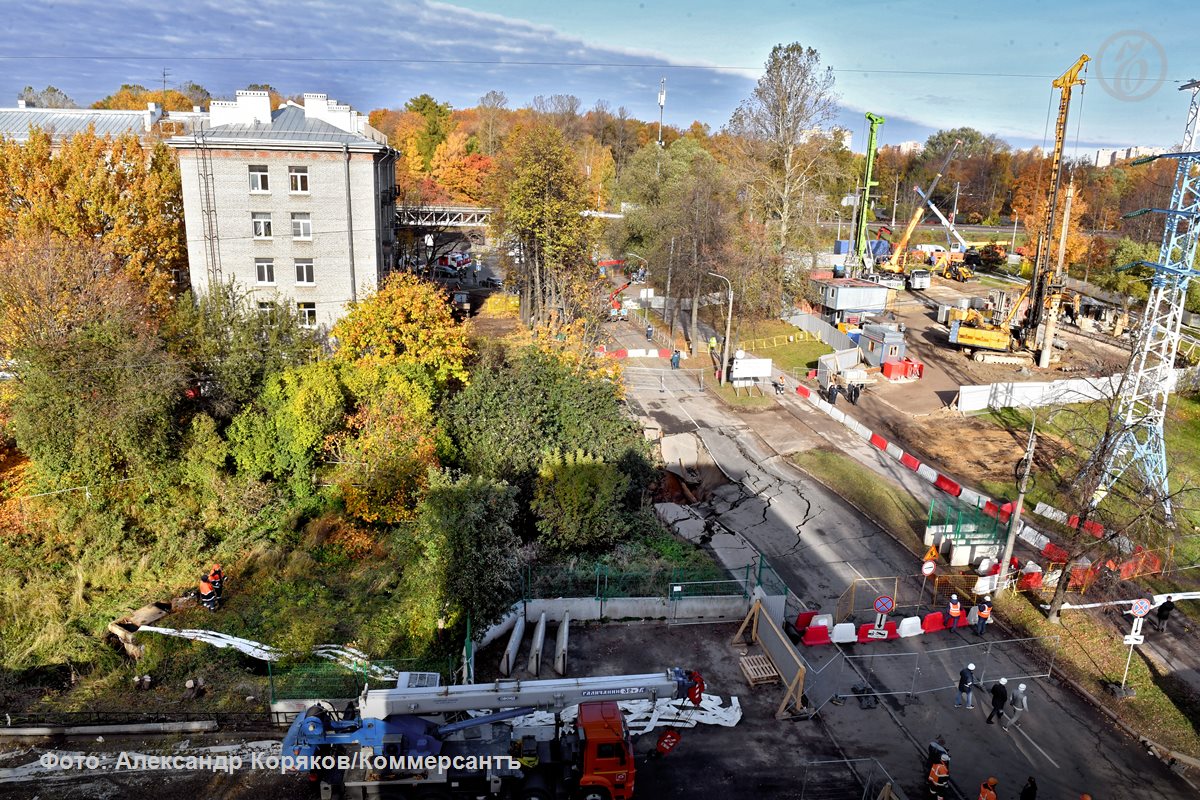 Фото провала грунта на пересечении 1-го Муринского проспекта и улицы Харченко
