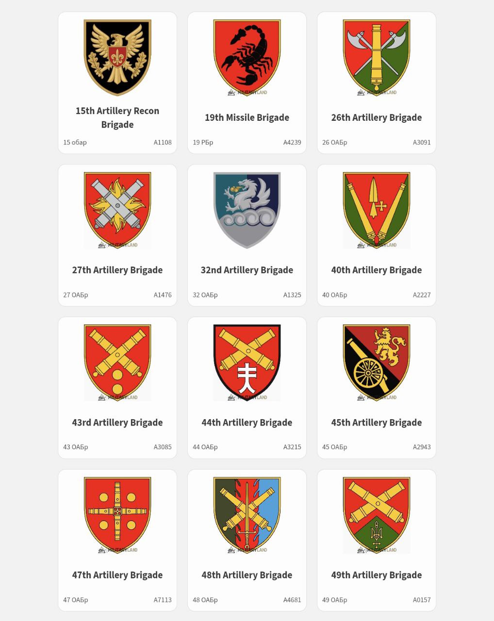 Соединения ракетных войск и артиллерии ВСУ. Среди новых артиллерийских бригад – 50-я, 52-я, 60-я, 68-я, 147-я.