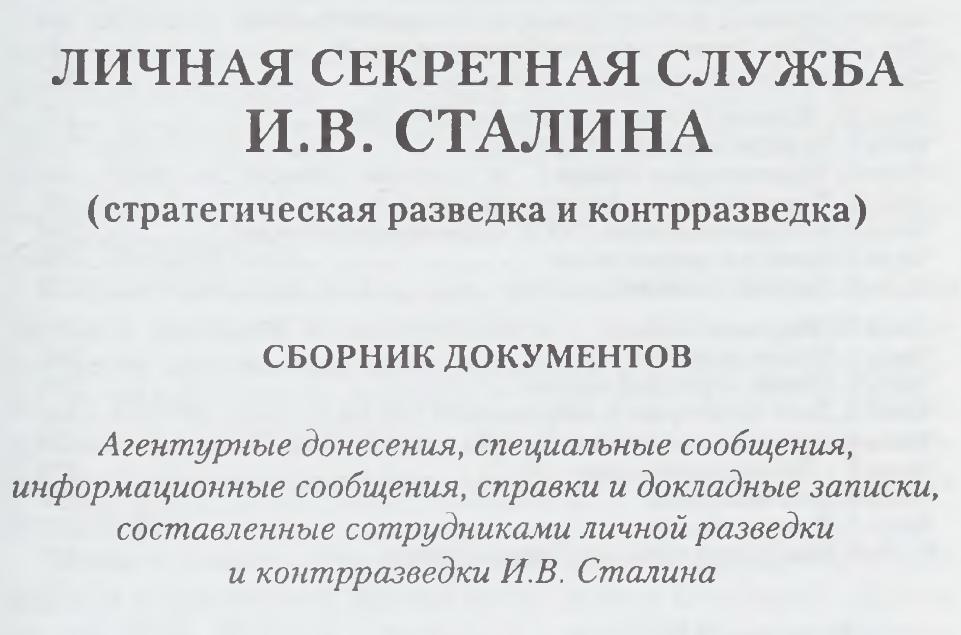 Одна из них - перед вами: "Личная разведка Сталина".