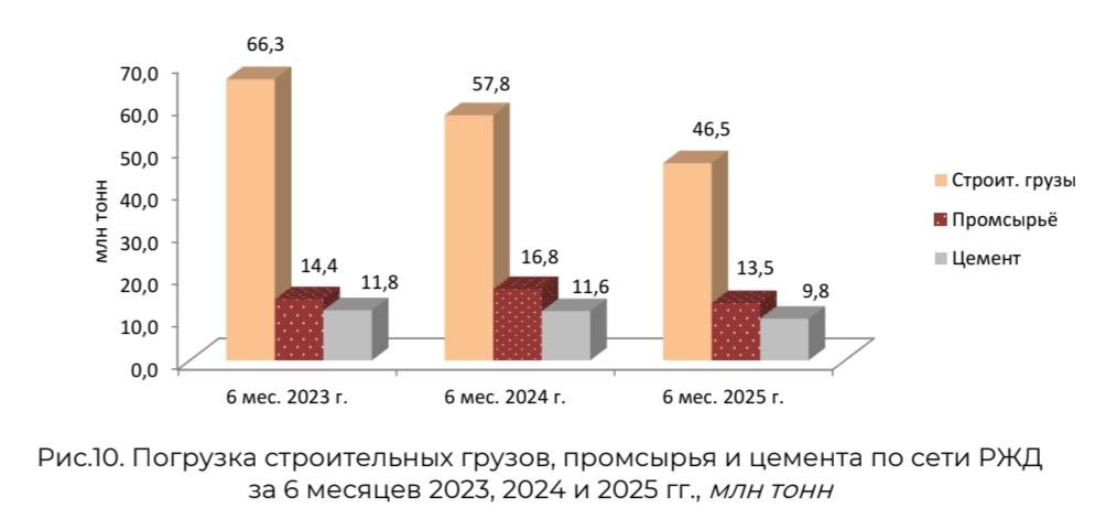 Если судить о реальном состоянии российской экономики не по заявлениям Банка России и оценками Минэкономики РФ с их «мягкой посадкой», а по статистике, в том числе публикуемой РЖД, — то самый жесткий кризис сегодня протекает в стройке. Погрузка строительных грузов на сеть РЖД за два года упала на 30%. С цементом дела немного получше — всего лишь 17% потерь за два года. Конечно, в модели нужно учитывать фактор резкого роста стоимости услуг РЖД в последние годы: грузы стало выгоднее отправлять автотранспортом, тем более если грузополучатель находится в радиусе 500 км.