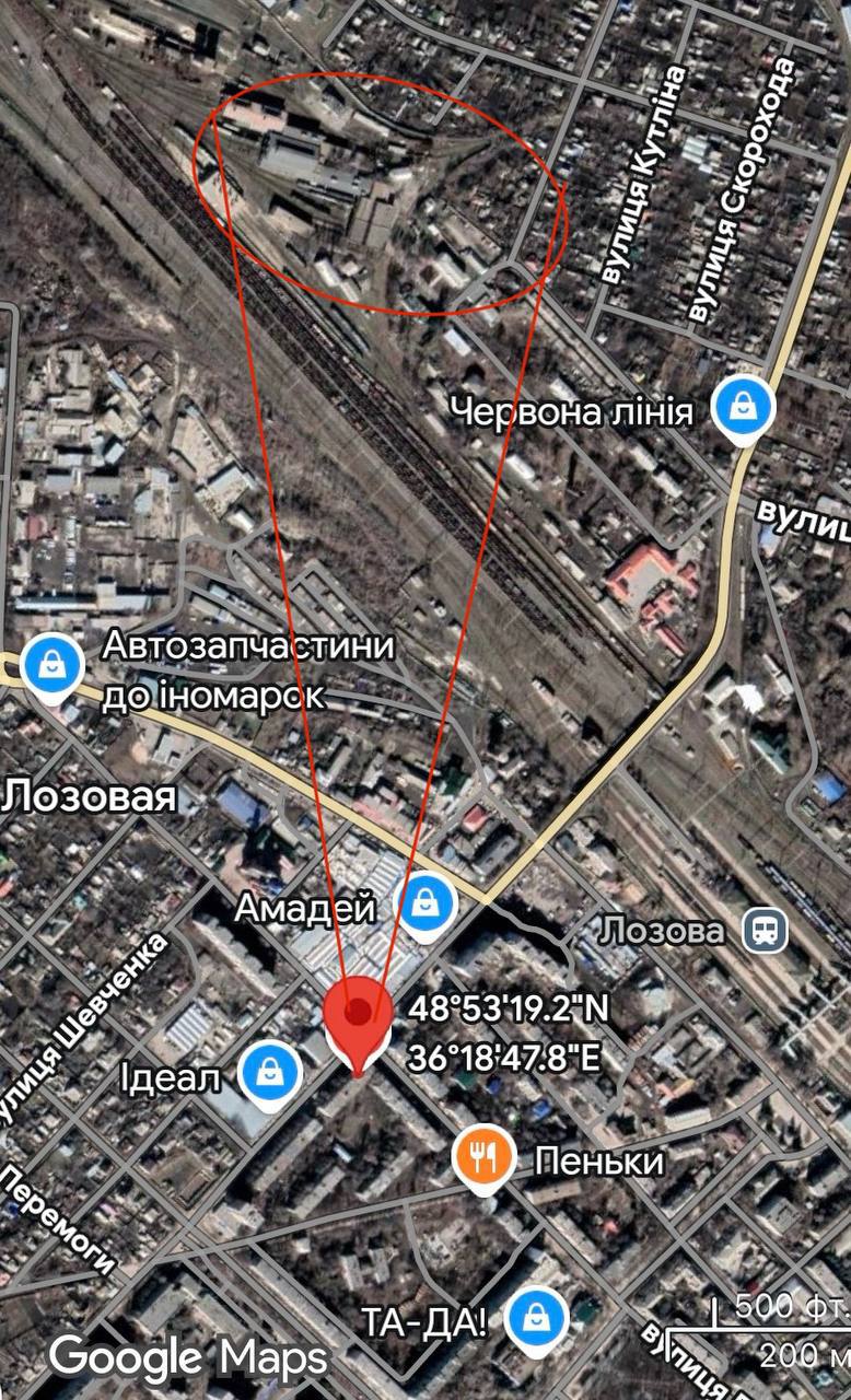 Вчерашний налёт бпла-камикадзе «Герань-2» по локомотивному депо и ж/д инфраструктуре в н.п Лозовая, Харьковская область.
