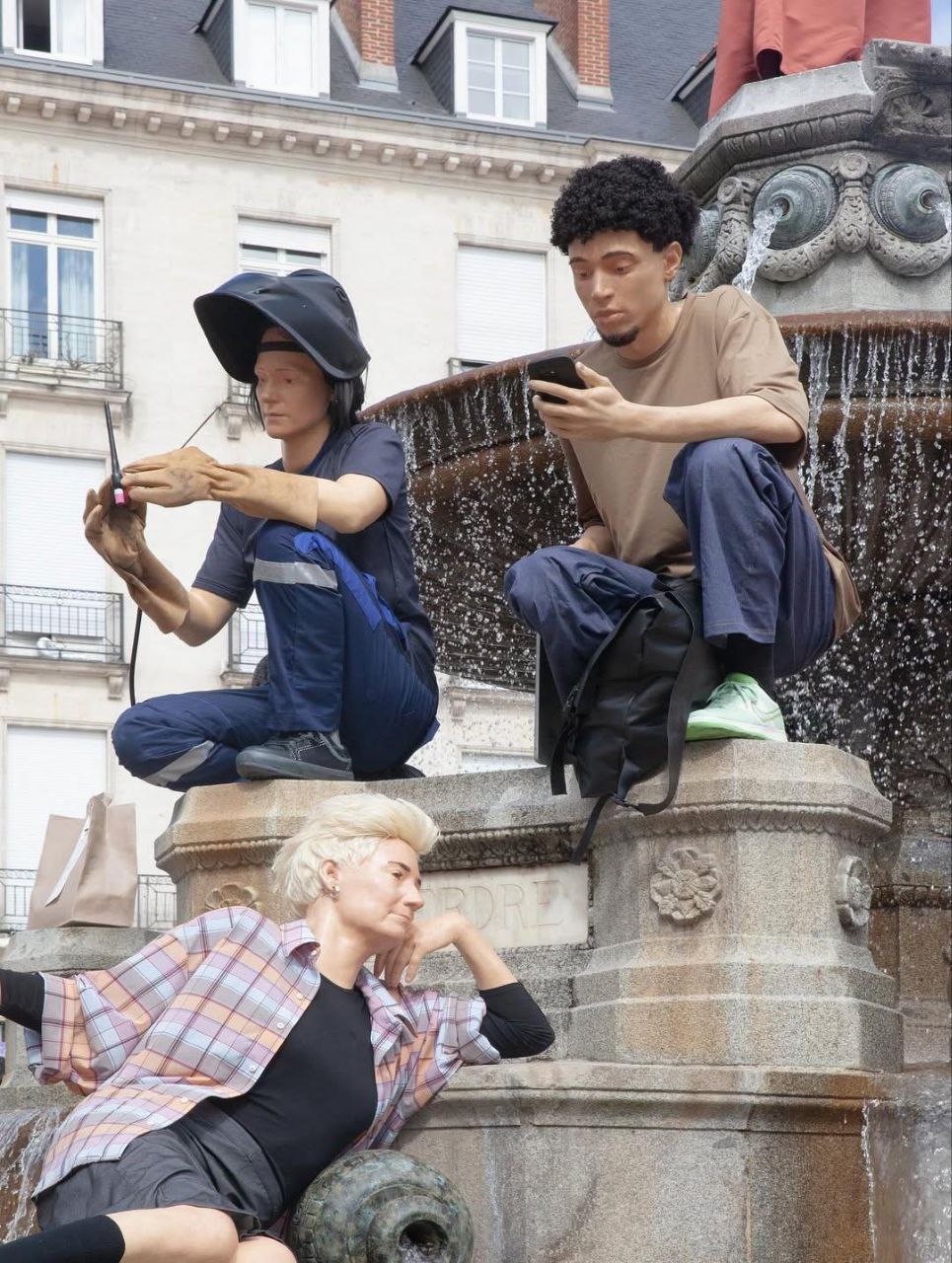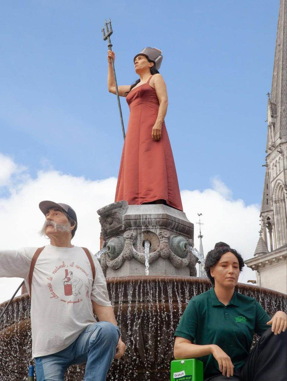В рамках арт-выставки античных богинь и нимф временно «свергли» и на полгода заменили современными персонажами, в которых, как заявляет автор, можно узнать обитателей города. Возглавляет компанию женщина, которой вручили... трезубец, а на голову надели странный головной убор.